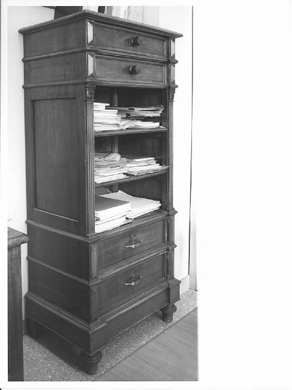 piedi a cipolla, serie di cinque scomparti sormontata da due cassetti
