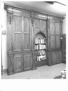 a incavo centrale contenente ripiani, affiancato da doppia serie di sportelli , cornicione liscio aggettante