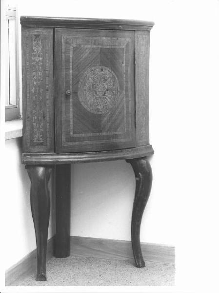 gambe incurvate, anta centrale decorata con specchiatura a intarsio