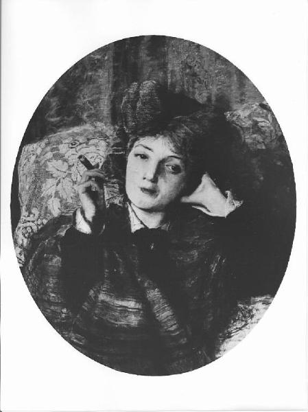- NOTIZIE STORICO CRITICHE Il dipinto, presentato all'annuale esposizione dell'Accademia di Brera nel 1871 assieme a due soggetti carnevaleschi , fu presumibilmente acquistato, in quella occasione da Francesco Pagnoni, affermato tipografo milanese, il quale formò la propria collezione tra la fine degli anni sessanta dell'Ottocento e l'inizio del decennio successivo. Il nucleo maggiore della sua raccolta era costituito dalla galleria dei ritratti di famiglia e di alcune opere significative quali "L'inaugurazione del Collegio Tipografico Pagnoni" di Sebastiano De Albertis e "Il Passatempo" che vennero destinate, con testamento olografo del 1875, all'Orfanotrofio femminile delle Stelline. La cospicua donazione fu poi esposta nel 1877, anno della morte del benefattore, nel Palazzo delle Stelline di Corso Magenta a Milano, in un piccolo museo a lui dedicato. \nIl dipinto, realizzato da Filippo Carcano, si pone alla fine di un decennio in cui l'artista si è dedicato interamente a un'attenta ricerca linguistica improntata sulla resa del vero attraverso lo studio della luce e degli effetti luminosi e l'utilizzo di colori saturi annullanti il disegno e il chiaroscuro accademici. \nL'opera, insieme ad altri dipinti del Carcano di questi anni, si pone in una sorta di crocevia del percorso dell'artista il quale, proprio a partire dagli anni settanta dell'Ottocento, si dedicò sempre più costantemente alla pittura di paesaggio che gli consentiva un diretto confronto con il vero e con lo studio dei fenomeni ottici ai quali si era interessato fin dagli esordi.\nIl dipinto fu presentato all'esposizione dell'Accademia di Brera di Milano nel 1871 e puntualmente recensito su "Il Sole", 23-09-1871 n.231, p.1, dall'avvocato Krumm come "il passatempo nel quale è rappresentata una mezza figura di donna in atto di fumare un zigaretto. E' questo un dipinto in cui rivelasi somma potenza di colorito e bontà di disegno, ma non v'ha ombra di idealità che interessi; per cui puossi dire che si riduce a un pure e semplice ritratto d'un modello qualsiasi ch'egli ebbe davanti" .\nLa forza di questa immagine risiede nella capacità di rappresentare il reale, il quale è proposto con un'inquadratura nuova: una donna matura, abbigliata in aggraziate vesti femminili, è ritratta mentre assapora il tabacco del sigaro con aria svogliata e languida. E' assorta, incurante dell'istantanea che le è stata "scattata". La luce proveniente dalla parte destra in alto fa risaltare le bianche volute di fumo che si disperdono tra i bianchi ramages della poltrona e tra i capelli ingrigiti che le incorniciano il volto pallido e assorto. Una luminosità più rarefatta investe, invece, il bordo inferiore dell'ovale nel quale risaltano i colori cangianti dell'abito verde, il piccolo fiocco blu cobalto e i riflessi delle frange dello scialle che, coloratissimi, contrastano con i filamenti grigio-argentei presenti nella parte superiore della tela. \nLa modella non può essere iconograficamente accostabile ai ritratti degli altri donatori e benefattrici: fa parte di quel gruppo di opere esposte arrivate nella pinacoteca gratulatoria in quanto parte di una collezione interamente ereditata.