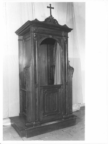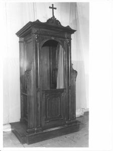 basamento sul quale è posta la nicchia centrale con apertura arcuata, cimasa a volute affrontate sormontate da crocifisso