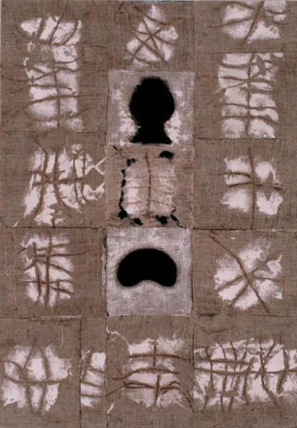 Opera costituita dall'insieme di pezzi di stoffa su cui sono dipinte delle impronte.