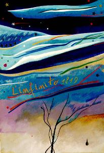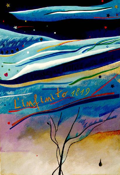Era caratterizzata da un paesaggio rappresntato con una cromia azzurra, in basso al centro rami spogli, al centro la scritta "L'infinito" 1819.