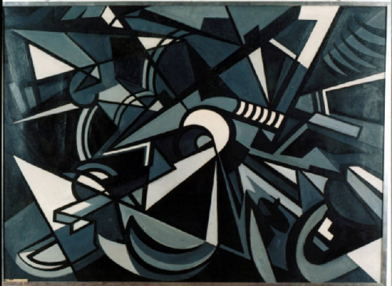 - NOTIZIE STORICO CRITICHE Afferente all'Astrattismo e al Concretismo italiano, quest'opera appartiene alla serie delle "Geometrie nere" realizzata da Vedova tra il 1946 e il 1950. Il dipinto tratta il tema della violenza grazie alla costruzione astratta di figure disposte in modo vorticoso intorno ad assi obliqui.\nIl tema affrontato è quello drammatico della Grande Guerra, che fortemente ha influenzato la società contemporanea e la coscienza di molti letterati e artisti. Conseguentemente l'opera acquisisce volutamente un forte impatto sociale e politico, divenendo denuncia del dolore accumulato dall'esperienza della guerra. Questo tipo di impegno, che coinvolge Vedova, si ritraccia anche in numerosi altri artisti italiani, che hanno combattuto per la libertà della patria, poi riunitisi sotto il nome di Fronte Nuovo delle Arti. Questa posizione di Vedova caratterizzerà tutta la sua produzione, che manterrà anche come maestro indiscusso della pittura informale europea.