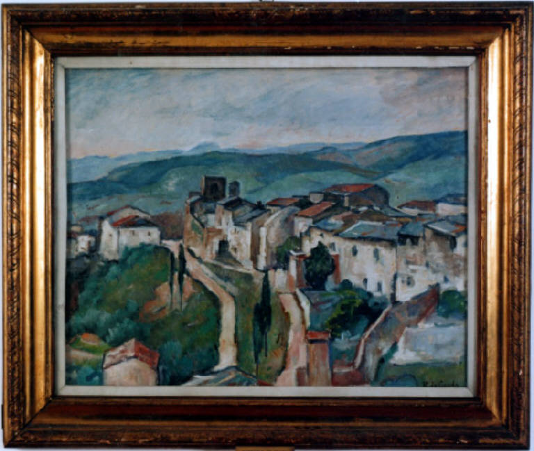 - NOTIZIE STORICO CRITICHE Appartenente al periodo novecentista italiano, quest'opera si colloca tra le tela dell'ultimo periodo del maestro milanese. Qui è evidente la mancanza della durezza compositiva dei primi anni di attività dell'artista e la volontà di non inserire eccessive masse volumetriche come aveva fatto in occasione delle opere più radicali del medesimo periodo novecentista. In questo dipinto sembrano coesistere differenti concezioni di paesaggio, che attestano la sua radicata attività in Lombardia e la sua formazione accademica di impianto svizzero-tedesco. L'opera, dunque, insieme ai retaggi della sua giovinezza e della sua più florida attività artistica, risente delle visioni incantate e sognanti dei paesaggi umbri e toscani, che ebbero tanta importanza nelle opere più didascaliche dell'autore. Dalle forti connotazioni intimistiche questo dipinto trova parziale spiegazione nel suo più radicato concetto di veduta naturale che così esprimeva: "in Toscana, piuttosto che in Lombardia, il paesaggio è più secco: è un paesaggio da uomini adulti che hanno percorso un più lungo cammino spirituale. E' un paesaggio formato, come se fosse già dentro lo stile. Ecco perché i pittori lombardi dovrebbero andare in Toscana e viceversa per potersi capire e dipingere".