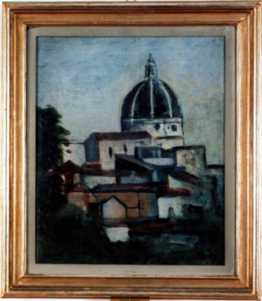 La rettangolare tela disposta verticalmente sulla quale Carrà ha dipinto, presenta una suggestiva veduta di Firenze dominata dalla cupola brunelleschiana di Santa Maria del Fiore. Lo sviluppo del paesaggio urbano è verticale e piramidale, poiché ai piedi della cupola si distribuisce l'abitato caratterizzato da case ridotte alle loro forme essenziali: una sorta di parallelepipedi che risalgono lungo la tela. In primo piano sulla destra l'artista dipinge una quinta vegetale costituita da alberi, mentre nella parte superiore inserisce un cielo terso e azzurro.\nIl colore caldo e sfumato lascia trasparire le modalità con la quale Carrà ha operato, prediligendo una stesura veloce e a tratto che, talvolta, ha definito nette linee di contorno.