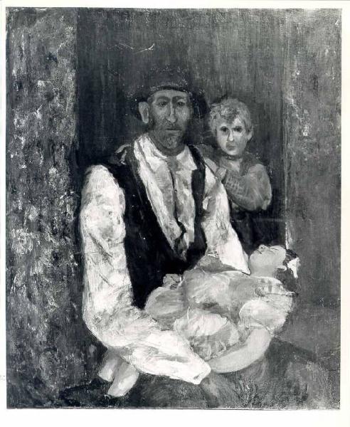 Questo dipinto, realizzato su una tela rettangolare disposta verticalmente, è costituito da un fondale scuro dal quale emergono i protagonisti. In primo piano un padre di famiglia in piedi, in camicia bianca e gilet nero che tiene tra le braccia il corpo morto della piccola figlia. Alle sue spalle, avvolto nell'ombra, un altro figlio emerge faticosamente. Il fondale è totalmente annullato per lasciare spazio alla tragedia e al lutto familiare. Anche il colore è impiegato per rispondere alle necessità narrative, poiché l'artista qui predilige l'utilizzo di cromie fredde. Unica eccezione è la macchia di colore che caratterizza l'abito rosso della bambina esanime.