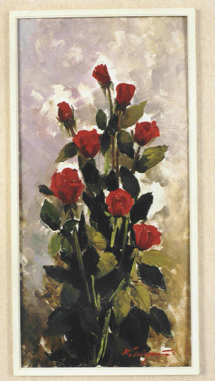 Opera che rappresenta un mazzo di rose rosse costruite con una pennellata veloce e franta. La luce è diffusa.