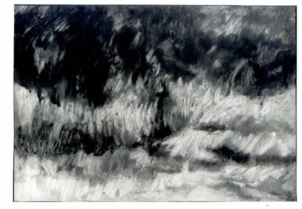 Opera pittorica costruita con segni liberi e veloci di colore disposti secondo direttrici orizzontali non rigide. La stesura è veloce e nervosa.\nIl colore è tonale, caldo (verde, giallo, bruno); sfumato. La struttura è dinamica e la luce è contrastata.