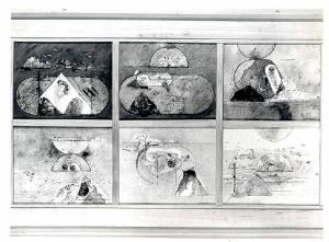 Opera pittorica formata da sei elementi di forma rettangolare. Ognuno è caratterizzatio da semplici segni geometrici. Il colore è caldo; sfumato. La stesura è sottile.\nLa linea è sottile, nitida, modulata, continua, frammentata, di contorno.\nLa struttura è ritmica e la luce contrastata e diffusa.
