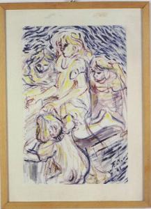 Opera pittorica che rappresenta quattro bambine. Il colore è caldo: giallo e rosso e freddo nello sfondo: bleu. La stesura è veloce, franta, irregolare.