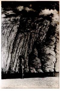 Opera pittorica che rappresenta in primo piano un giovane nudo in piedi sulla riva di un fiume. In secondo piano chiude l'argine del fiume un'alta e ripida montagna. Il colore è tonale; sfumato; caldo. La stesura è nervosa; veloce. La struttura è statica. La luce è laterale.