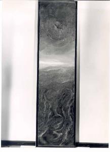Opera pittorica che rappresenta un paesaggio di montagna visto dall'alto, trasfigurato attraverso un segno veloce e quasi informale e una luce irreale.\nIl colore è tonale; caldo; sfumato. La stesura è nervosa; veloce; frammentata. La luce è frontale; contrastata.