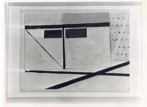 Opera pittorica caratterizzata da una composizione di figure geometriche accostate secondo uno schema rettangolare nella parte alta e obliqua nella parte bassa del dipinto. Un segno aperto e un colore non uniforme rendono la geomteria e lo spazio meno razionali. Il colore è tonale; freddo; sfumato.\nLa stesura è veloce; frammentata. La struttura è dinamica. La luce è uniforme.