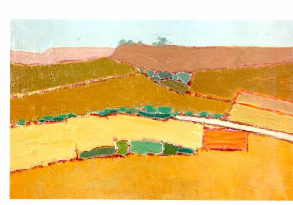 Opera pittorica che rappresenta un paesaggio collinare della Lucania rappresentato con stesure sintetiche di colore uniforme ad andamento orizzontale. Il colore è tonale; caldo (terre); sfumato. La stesura è lineare; uniforme; sottile. La struttura è statica. La luce è frontale; diffusa.