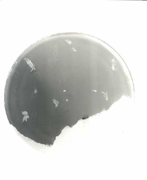 A motore spento lo spazio circolare è occupato nella zona inferiore dalla limatura di ferro e nella zona superiore da alcuni frammenti della restante limatura di ferro disposti in ordine sparso. A motore acceso la limatura di ferro viene trascinata da una calamita cambiando continuamente forme e posizioni.