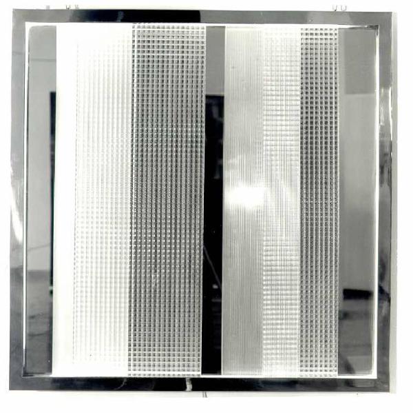 Quadro cinetico costituito da uno specchio rettangolare illuminato da neon ai bordi; davanti cinque lastre verticali di vetro trasparente, smerigliato e opaco che il fruitore dell'opera può spostare e comporre a sua discrezione ottenendo variabili effetti di riflessione della luce artificiale. Luce: variabile; riflessa.