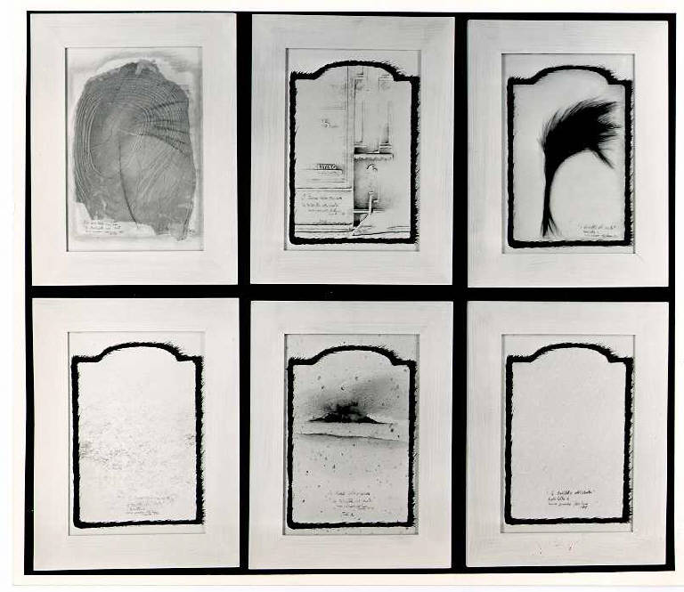 L'opera è composta da sei quadretti disposti in due fila sovrapposte di tre, uniti iconograficamente dalla rappresentazione simbolica del vento ottenuta con piccoli segni sparsi, collage di fogli, di rami, scritture. Stesura: sottile; veloce; a rilievo. Scrittura (orizzontale, corsivo, manuale, frase, parola).\nStruttura: dinamica. Luce: contrastata.