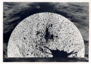 Opera pittorica che frappresenta al centro dello spazio compositivo una mezza luna illuminata frontalmente, frammentata da macchie di colore scuro più o meno addensate. Al di fuori della luna lo spazio è riempito da segni liberi e quasi informali. Stesura: sottile; nervosa. Linea grossa, modulata.\nStruttura: dinamica. Luce: frontale; contrastata.