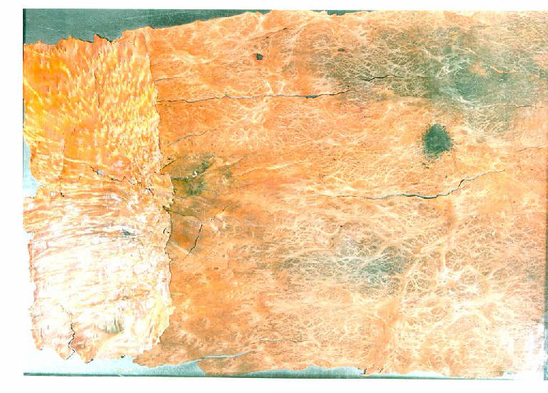 Opera costituita da una composizione materica libera ottenuta modulando una corteccia rossa su fondo scuro ad andamento verticale. La corteccia era parte di un happening tenuto dall'artista contro il disboscamento delle foreste vergini. Il colore è caldo (rosso).