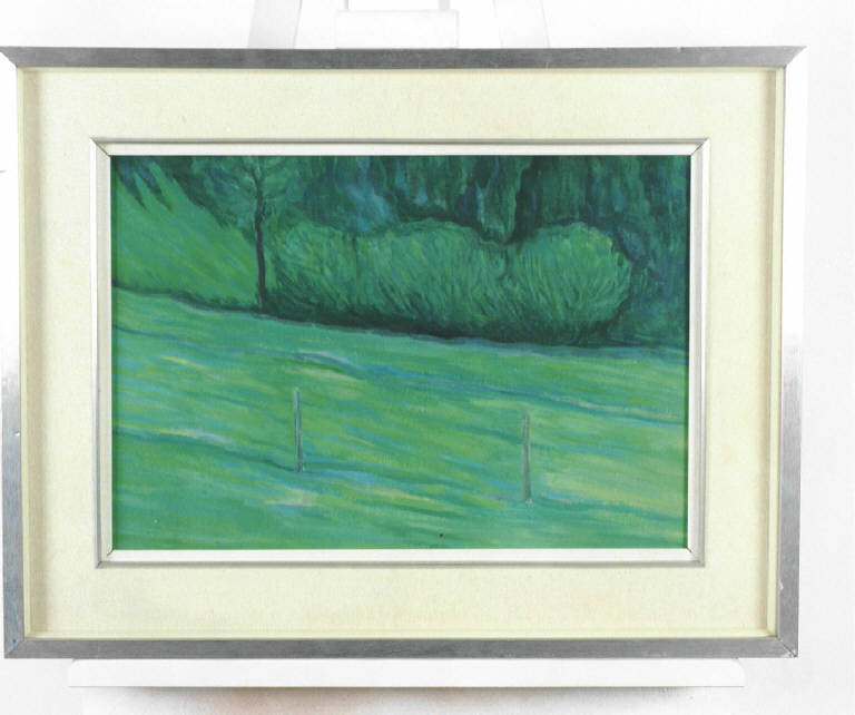 Opera che rappresenta un prato e sullo sfondo un bosco. La stesura è uniforme.