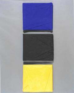 Piegare il giallo N.1 Piegare il nero N.2 Piegare il blu N.3. Tre tele giallo nero bleu