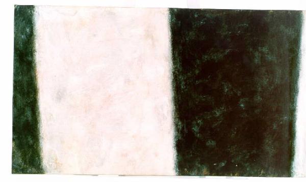 Opera pittorica costituita dalla contrapposizioe di tre zone cromatiche ad andamento verticale, rispettivamente da sinistra: scura, chiara, scura.\nIl colore è tonale; acromatico (bianco, grigio, nero). La stesura è sottile; velata; frammentata. La luce è contrastata.