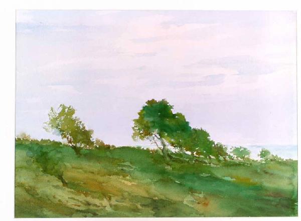 Opera pittorica che rappresenta un paesaggio di campagna con alberi mossi dal vento, eseguiti velocemente e non descrittivamente.\nIl colore è tonale; freddo; (verde, azzurro); caldo (bruni). La stesura è sottile; veloce; a macchia. La luce è contrastata; laterale.