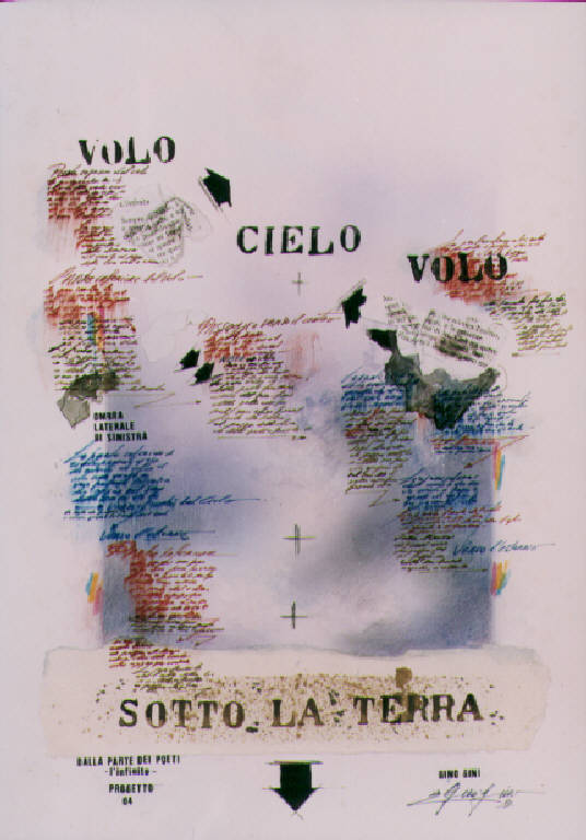 Opera costituita dalla composizione di scritte, segni grafici e frammenti di carta. Stesura: veloce.