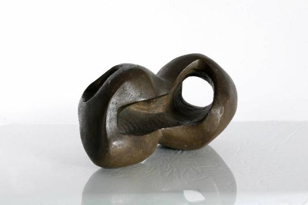 Opera a tutto tondo di forma sinuosa. Il bronzo è scavato e modellato per far entrare il vuoto nella materia.
