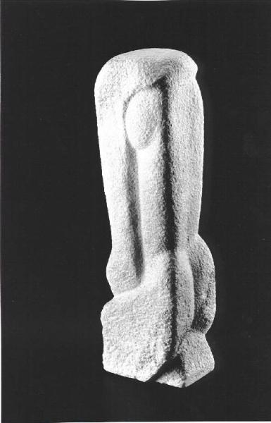Scultura a tutto tondo in cui sono scolpite, appena accennate, le figure di un uomo e di una donna abbracciati.
