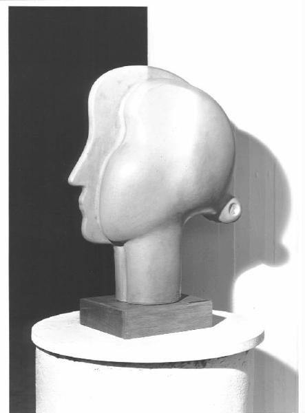 Opera a tutto tondo che raffigura una testa di donna.