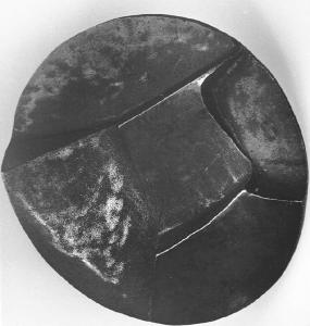Opera di forma circolare con rilievi astratti.