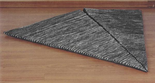 Opera a tutto tondo di colore grigio a forma piramidale.