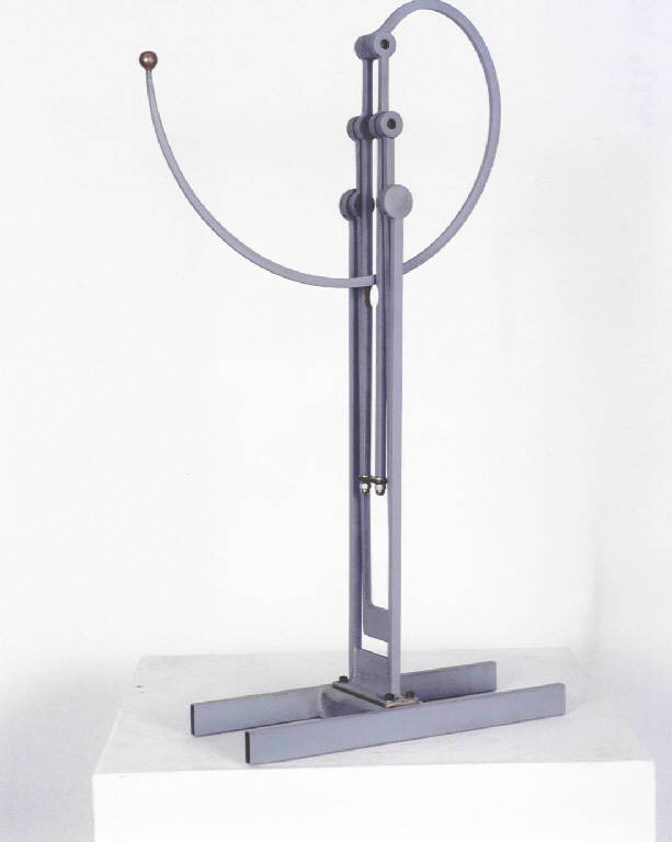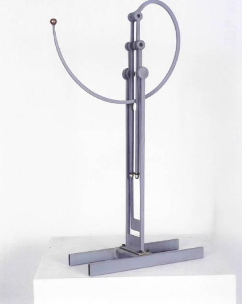 Opera costituita dall'insieme di parti che si muovono imprimendo una leggera forza. La struttura è in metallo dipinto in grigio con alcune parti dorate. L'elemento più alto è a forma arcuata e sembra la lettera C; termina con una piccola sfera dorata.