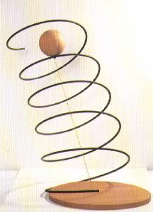 Opera a tutto tondo a forma di una grande molla che sollecitata oscilla in ogni direzione. Al penultimo anello è fissata una palla in legno collegata alla base da una corda di chitarra.