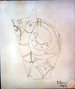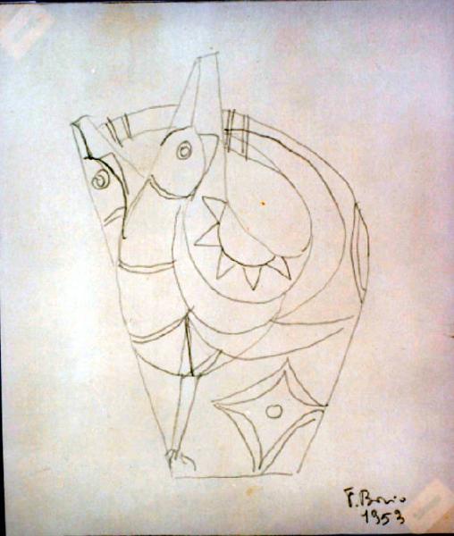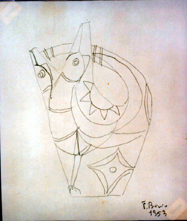 Disegno a matita di un progetto per una brocca la cui decorazione è caratterizata da uccelli stilizzati.\n\n.