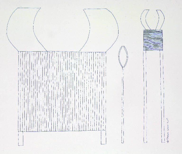 Composizione di forme astratte costituita da tre elementi che si sviluppano verticalmente, il primo dei quali risulta di dimensioni maggiori.
