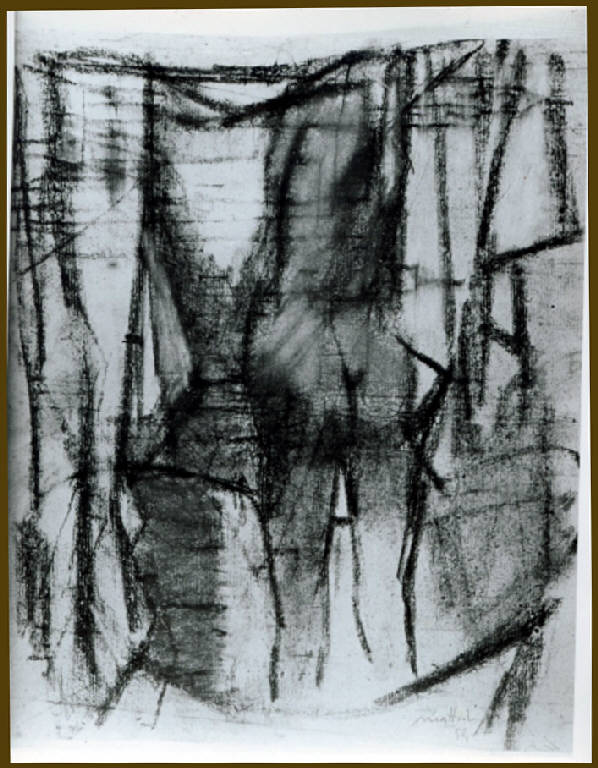Opera realizzata a pastello che ritrae una donna nuda rappresentata di spalle senza testa e parte delle gambe. Lo spazio compositivo è trattato con piani geometrici irregolari\n\n.