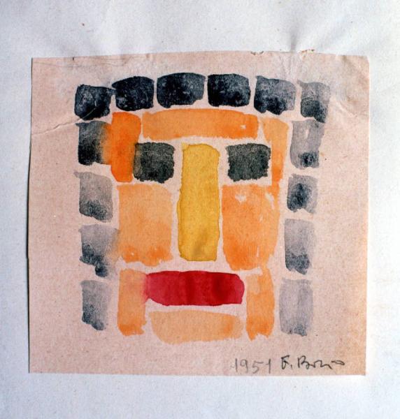 Opera che rappresenta un volto. Il viso ha la forma di un cerchio ed è costituito da piccole pennellate di colore giustapposte e anch'esse geometriche.
