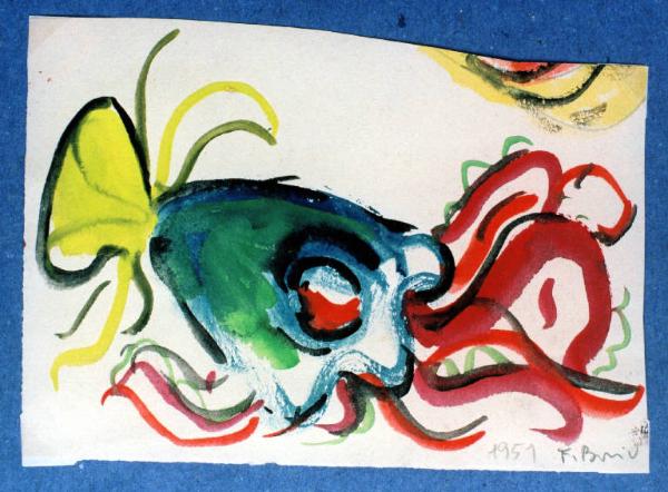 Opera che rappresenta una seppia. I colori sono vivaci e la linea è mossa e dinamica.