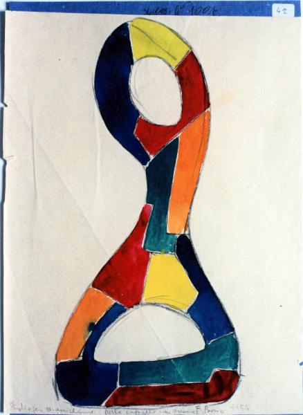 Opera caratterizzata da una composizione fluida di andamneto verticale. I colori vivaci circoscrivono zone ben definite, ma irregolari nei contorni.