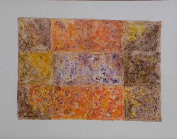 Composizione astratta per rettangoli e quadrati. Colori: Viola, Arancione, Marrone e Ocra.