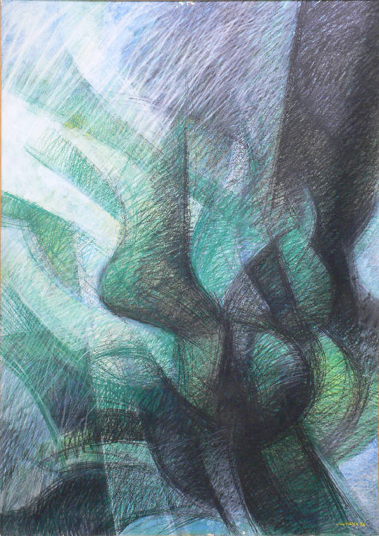 Composizione nei toni del verde e del nero che si va progressivamente schiarendo nella parte in alto a sinistra. Linee ondulate si sviluppano per tutta l'opera e creano campi di colore chiari e scuri. Il colore è steso attraverso segni rapidi e non in modo uniforme.