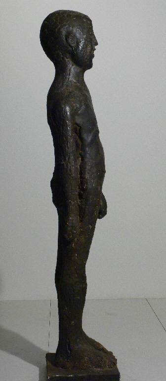 Figura maschile in posizione eretta. Il braccio sinistro è leggermente spostato in avanti.