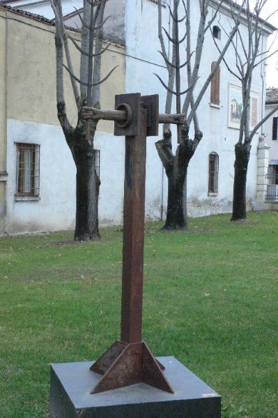Base composta da quattro trapezi che si affinacano in modo circolatorio ad un parannelepipedo sottile e lungo. All'estremità superiore due braccia sostengono due rami sviluppati verticalmente