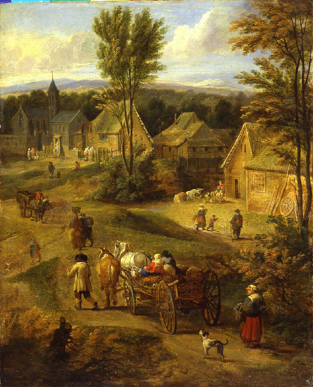 - NOTIZIE STORICO CRITICHE Come il "Paesaggio invernale"suo pendant, monogrammato TM in basso al centro, questo "Paesaggio estivo" è riconducibile alla mano di Theobald Michau, artista cui si deve, ancora nel Settecento, la continuità della tradizione anversese dei piccoli paesaggi colorati e ricchi di dettagli, dipinti secondo la sperimentatissima ricetta di Jan Brueghel il Vecchio. Da un paesaggio invernale attribuito a quest'ultimo sembrano qui riprese alcune delle figure del piano intermedio e i cavalli col calesse in primo piano (Jager 1985, pp. 22-23, ill.).