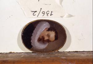 - NOTIZIE STORICO CRITICHE Raffigurato in scala ridotta, è qui un giovane a mezzo busto con ampia gorgiera rigida. L'estrema disinvoltura della posa di scorcio, la sapienza formale nell'uso delle lumeggiature a biacca che sottolineano il contrasto tra la figura e il fondo scuro da cui essa emerge, suggeriscono per questa miniatura una paternità di tutto rispetto, per la quale è possibile fare, sebbene in via del tutto ipotetica, il nome di Paulus Moreelse. L'opera proviene dalla collezione Bolognini e alla fine dell'Ottocento (1895), secondo una pratica ricorrente per l'esposizione delle "miniature" o dei dipinti di piccole dimensioni, venne sistemata all'interno di un "passe-partout" insieme agli inv. 136/1-136/6.