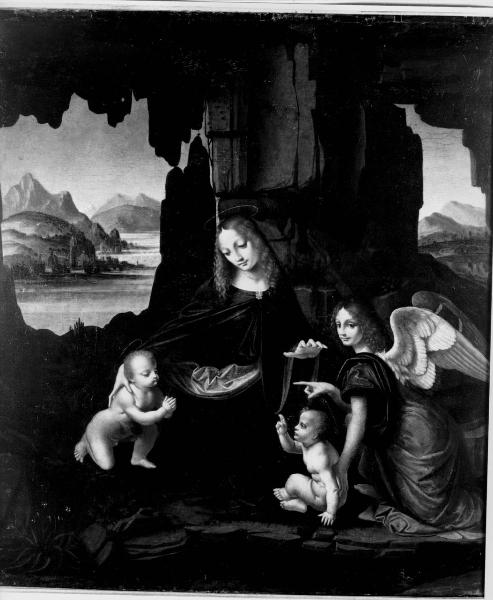 La Madonna col Bambino, San Giovannino e un angelo (dalla Vergine delle Rocce di Leonardo); Grottesche (sul verso). Madonna con Bambino, San Giovannino e un Angelo