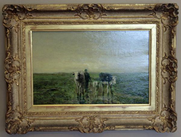 Paesaggio olandese. paesaggio con pastore e animali al pascolo